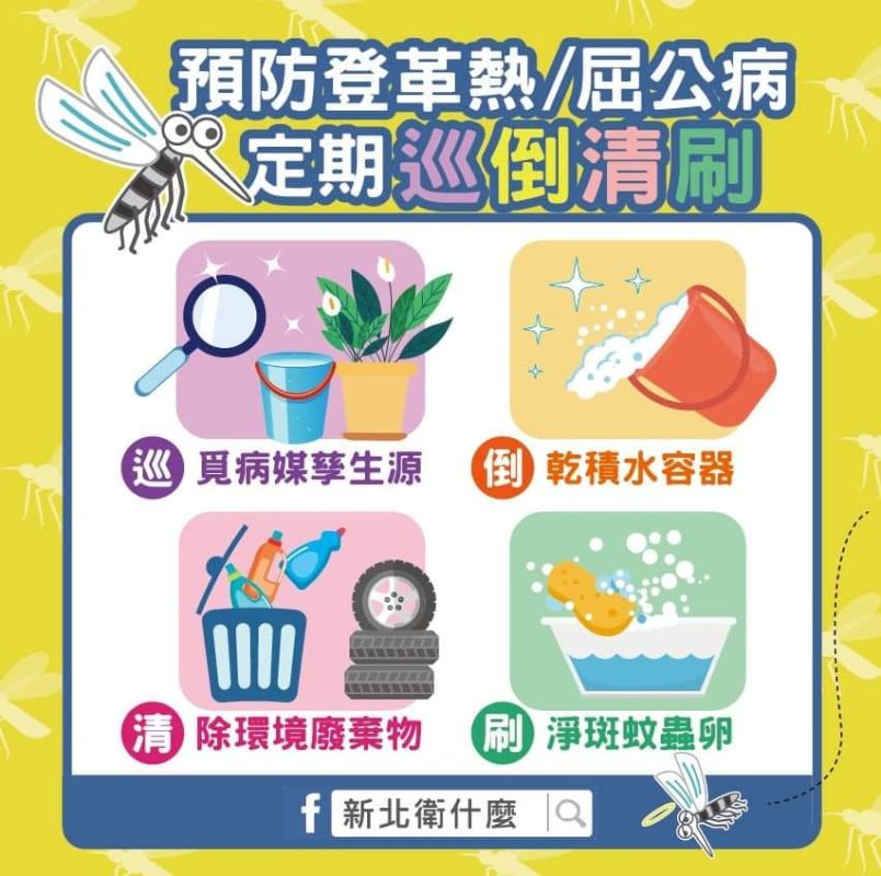 疾管署提醒,目前雖尚未出現登革熱/屈公病本土病例,但今(2025)年截至8/4累計124例登革熱境外移入病例,為近6年同期次高,仍有造成疫情擴散之風險。籲請民眾雨後主動巡檢居家環境,落實「巡、倒、清、刷」,仔細巡視戶內外容器,將積水倒掉並澈底清除,若有大型廢棄容器,可連絡清潔隊協助清運,留下的器物也要刷洗去除蟲卵後,妥善收拾或予以倒置。如有出現發燒、頭痛、腹瀉、噁心嘔吐、後眼窩痛、肌肉關節痛、出疹等登革熱疑似症狀,請儘速就醫並主動告知活動史,以利醫師及早診斷及通報。