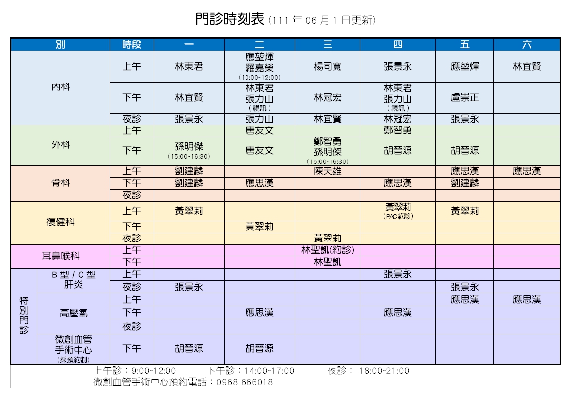 11106門診時刻表