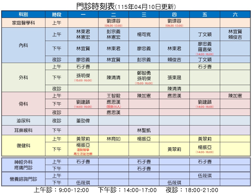門診時刻表